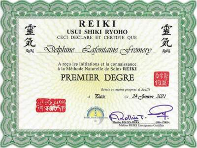 - Janvier 2021 : Obtention de la certification Reïki (1ier dégré)